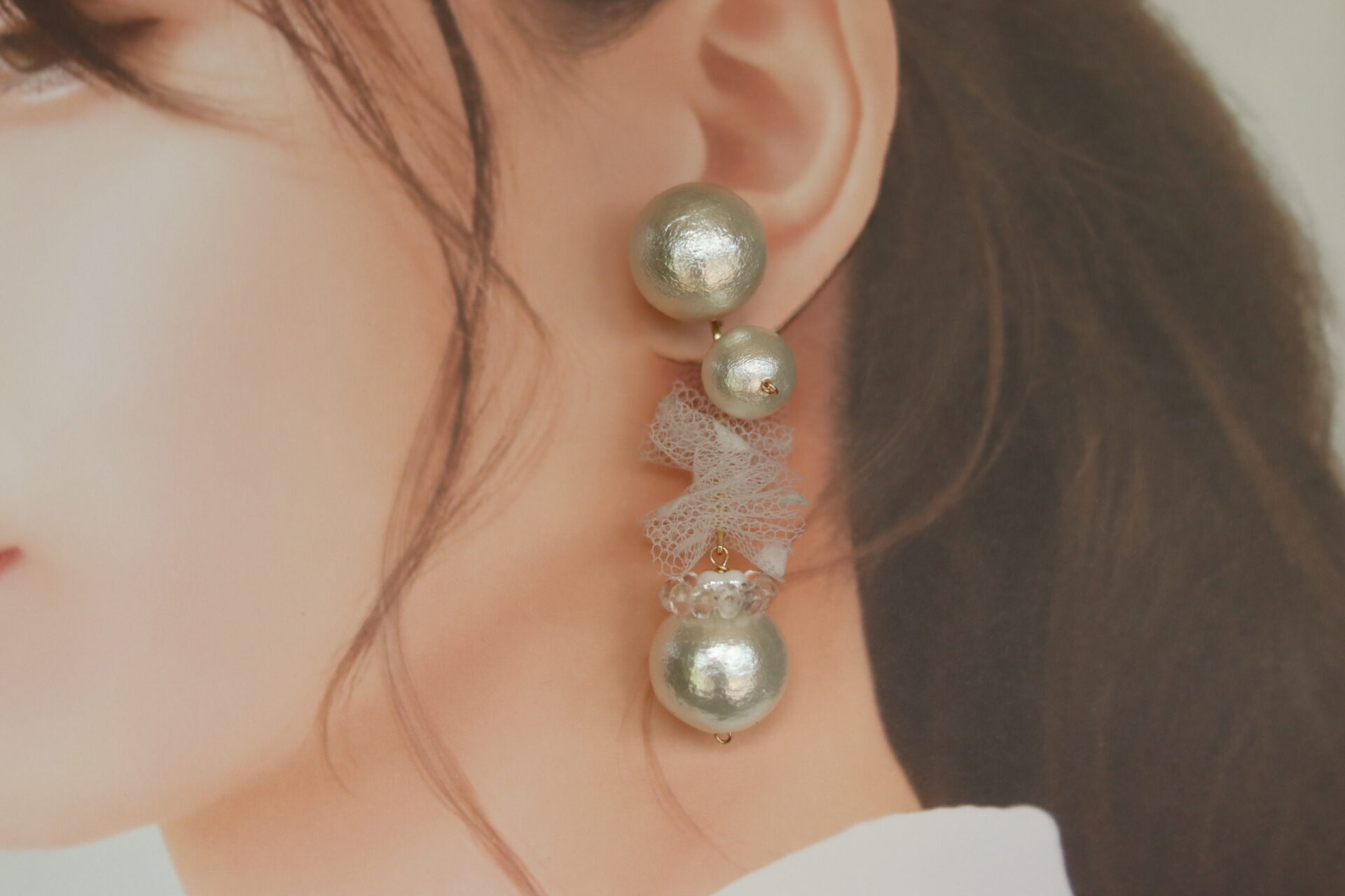 大粒のコットンパールをメインに、